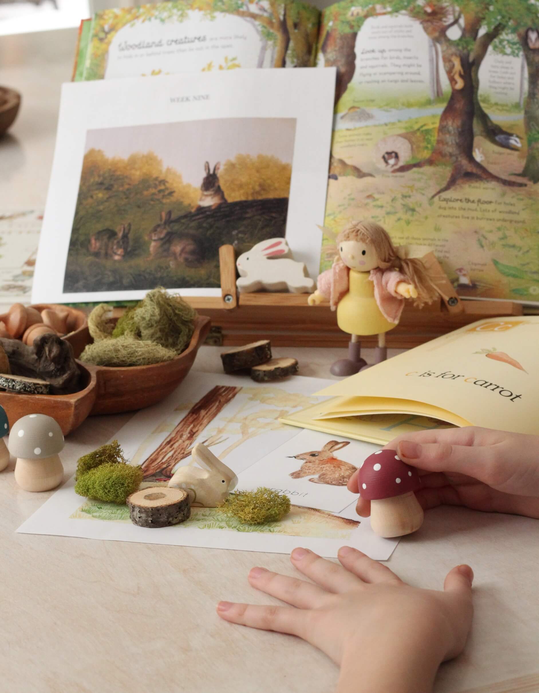 Throughout this curriculum we are often encouraged to play together. We love the sensory bin and “small world play” ideas that are shared. There are also many suggested handcrafts that often keep us busy and inspired for days on end.